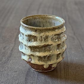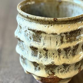 釉薬の流れが美しいカップです。手仕事で作る表面の凹凸が指に馴染みます。