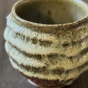 釉薬の流れが美しいカップです。手仕事で作る表面の凹凸が指に馴染みます。